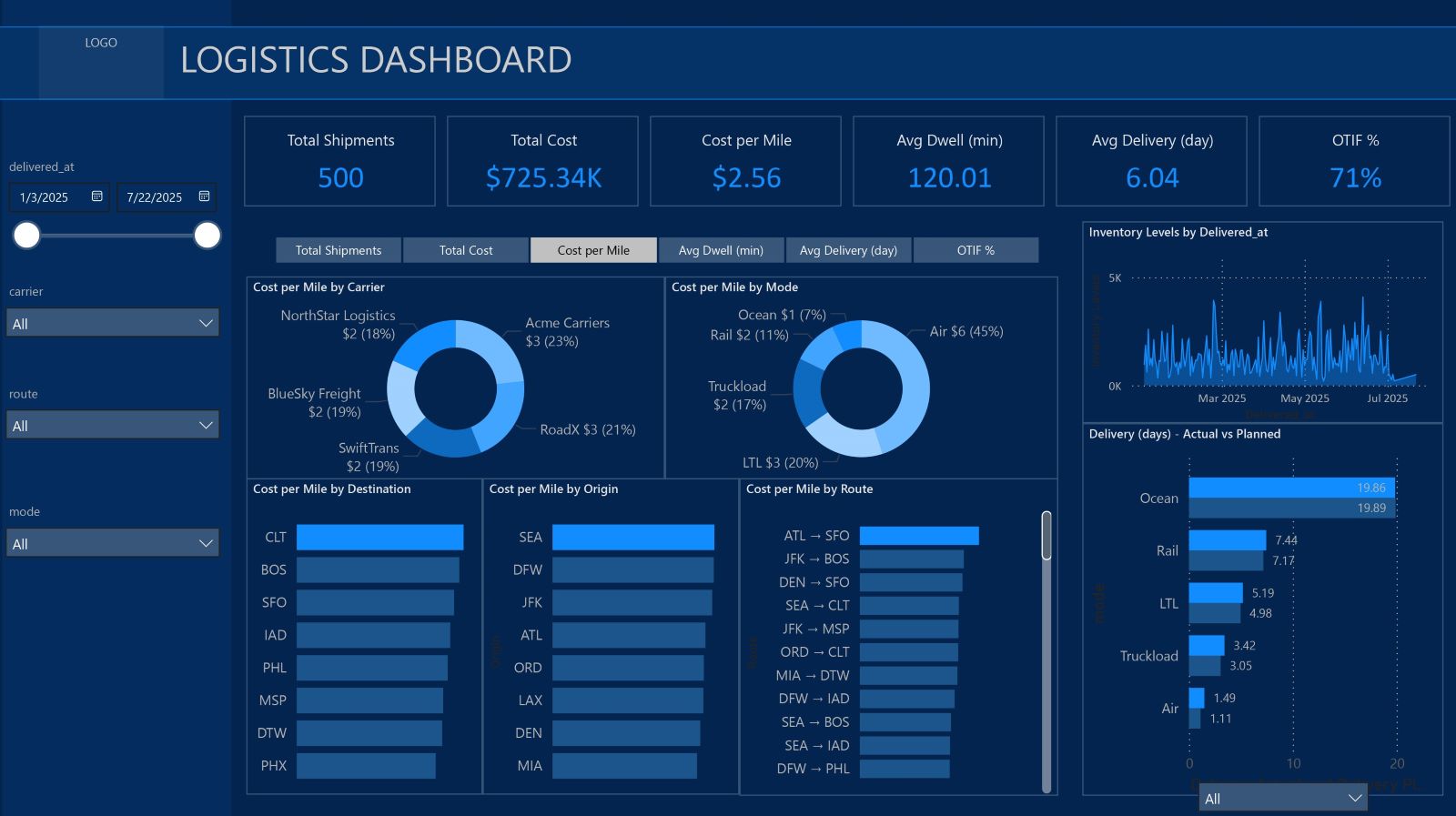 LogiMetrics Analytics is a logistics analytics consultancy that helps trucking companies, warehouses, and distributors use data to improve efficiency, reduce shipping costs, and optimize delivery performance.